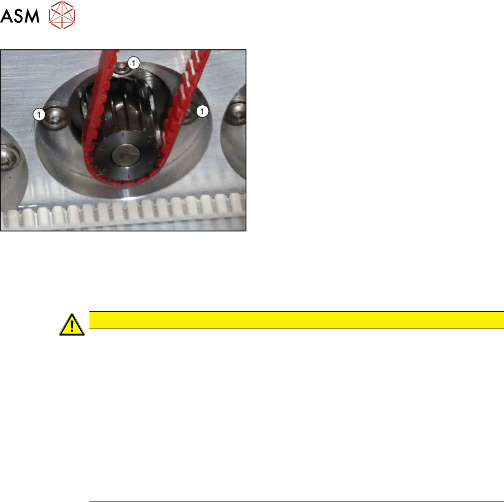 4 Replacing spare parts at the conveyor 4.3 Conveyor drive 50 Service Manual ASM ProcessLens Dual-lane 09/2018 Fig.23: Fastening screws ► Remove the three screws (1) fastening the con- veyor drive. ► Carefully unthread…