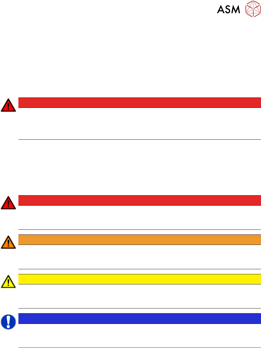 1 Introduction 1.1 Safety instructions 6 Service Manual ASM ProcessLens Dual-lane 09/2018 1.1.2 Safety instructions for working with strong magnetic fields DANGER Strong permanent magnetic fields Fatal hazard: persons wi…