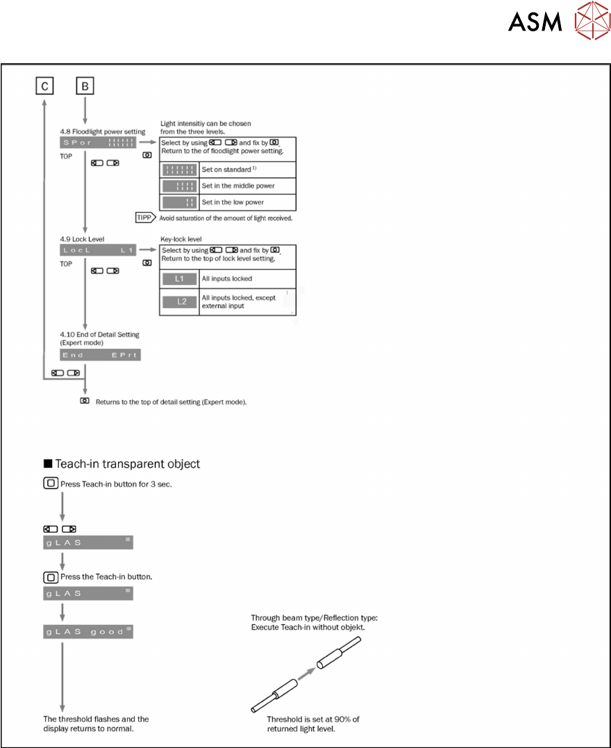 4 Replacing spare parts at the conveyor 4.6 Fiber optic cables and laser light barriers Service Manual ASM ProcessLens Dual-lane 09/2018 89 Fig.75: Setting the fiber optic sensor - 4