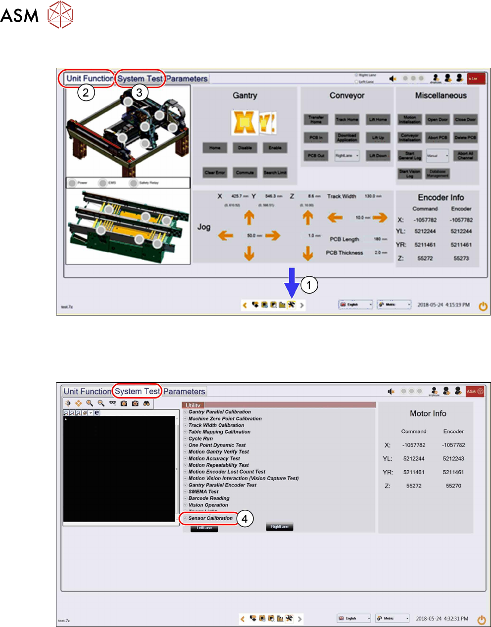 ► Click on System Test(3) to enter the calibration menu.