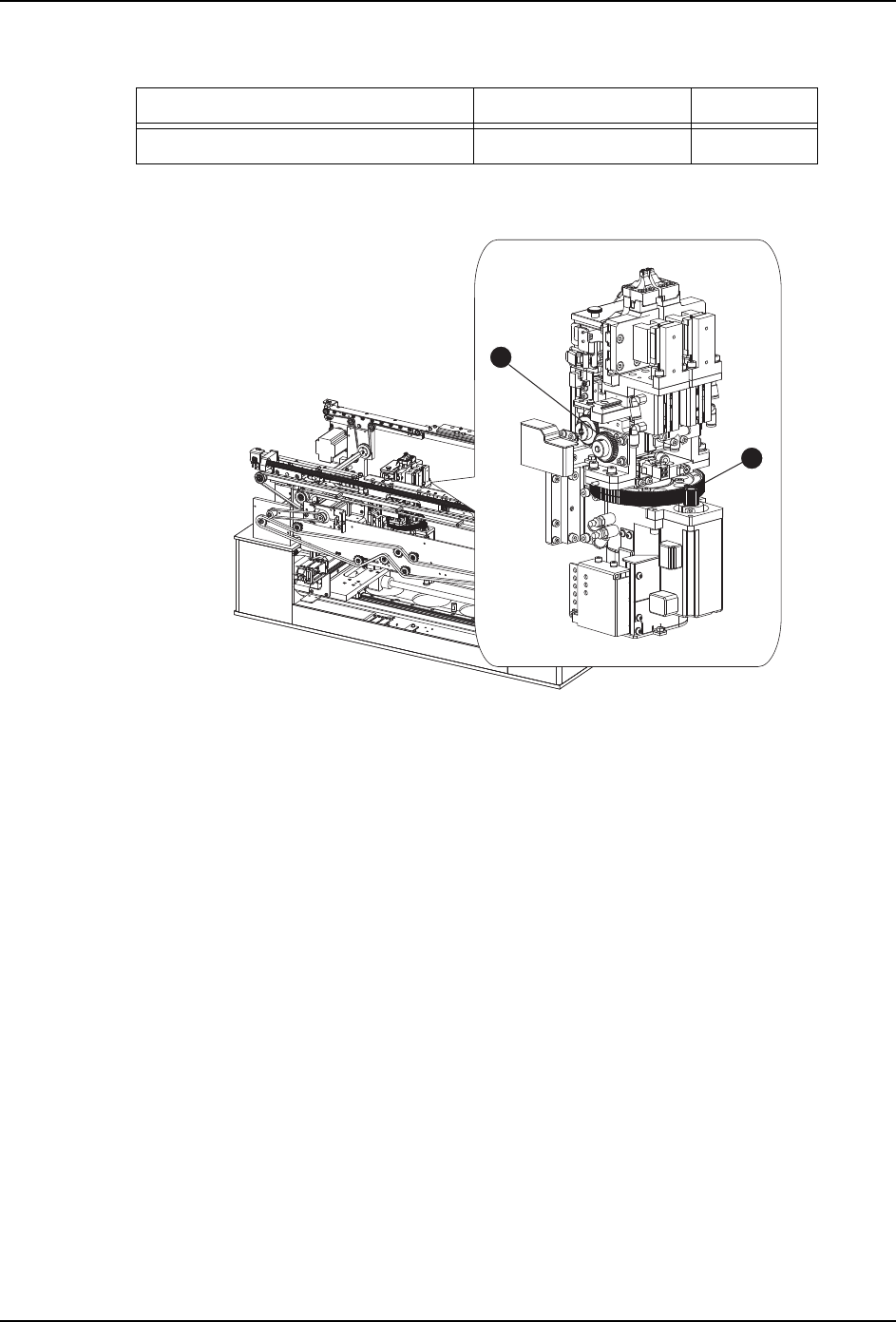 1. 使用清洁布擦去 θ 轴齿轮 (1) 或者 P 轴齿轮 (2) 上的污垢。
