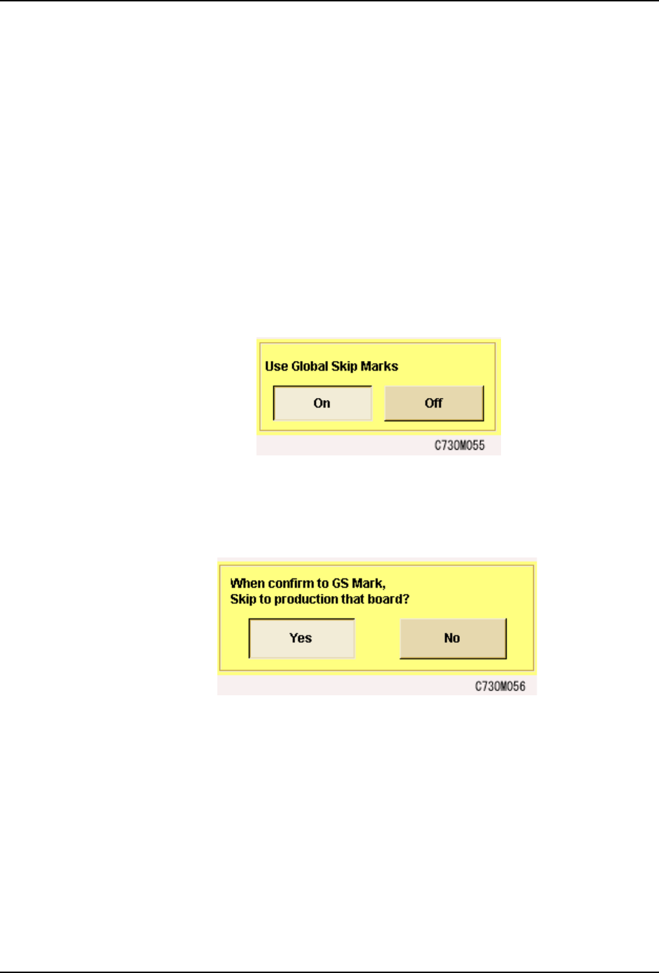 3. It is possible to skip production on a board when global skip marks are detected. To use