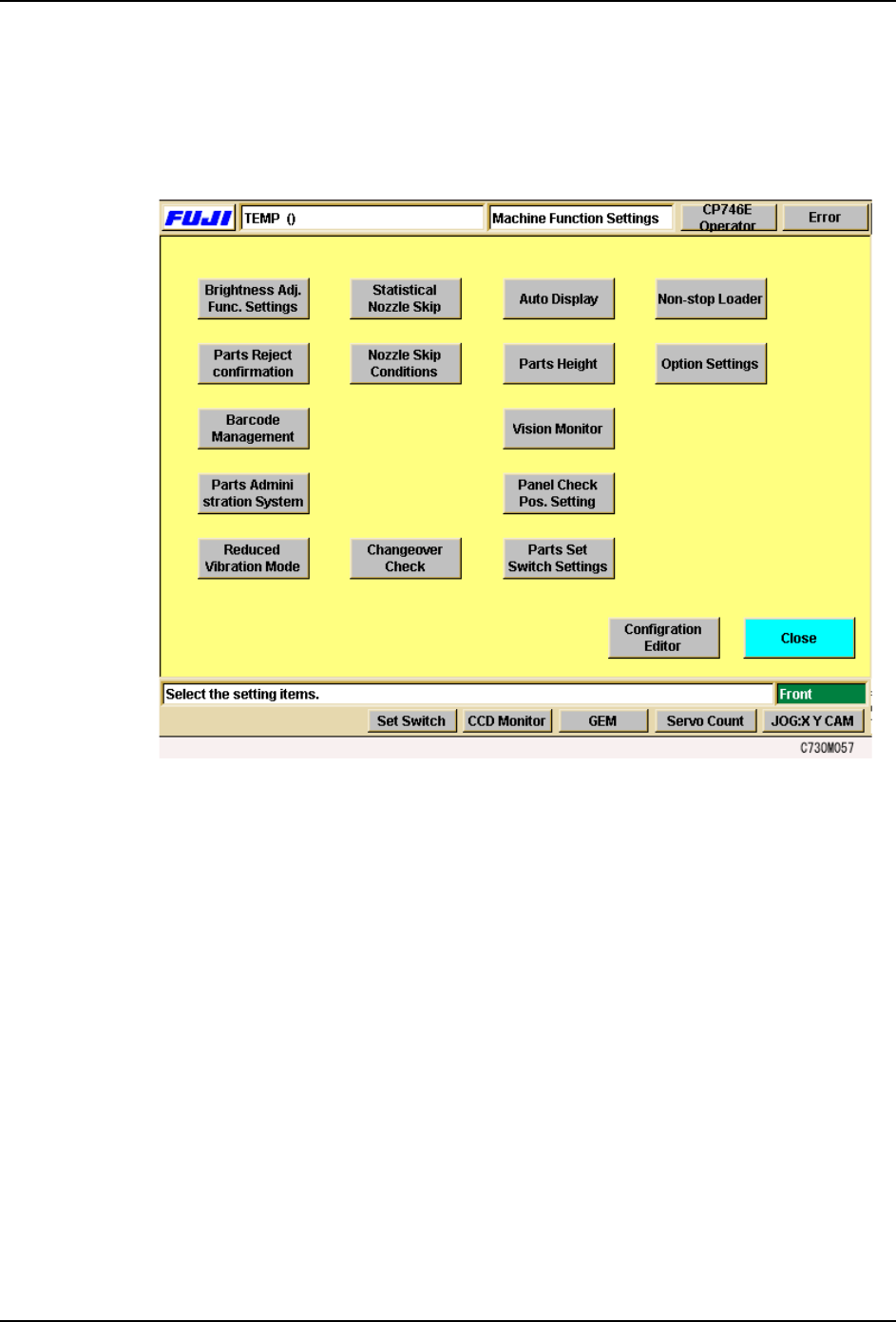 Select the [Maintenance] - [Configuration] - [Machine Function Settings] commands to