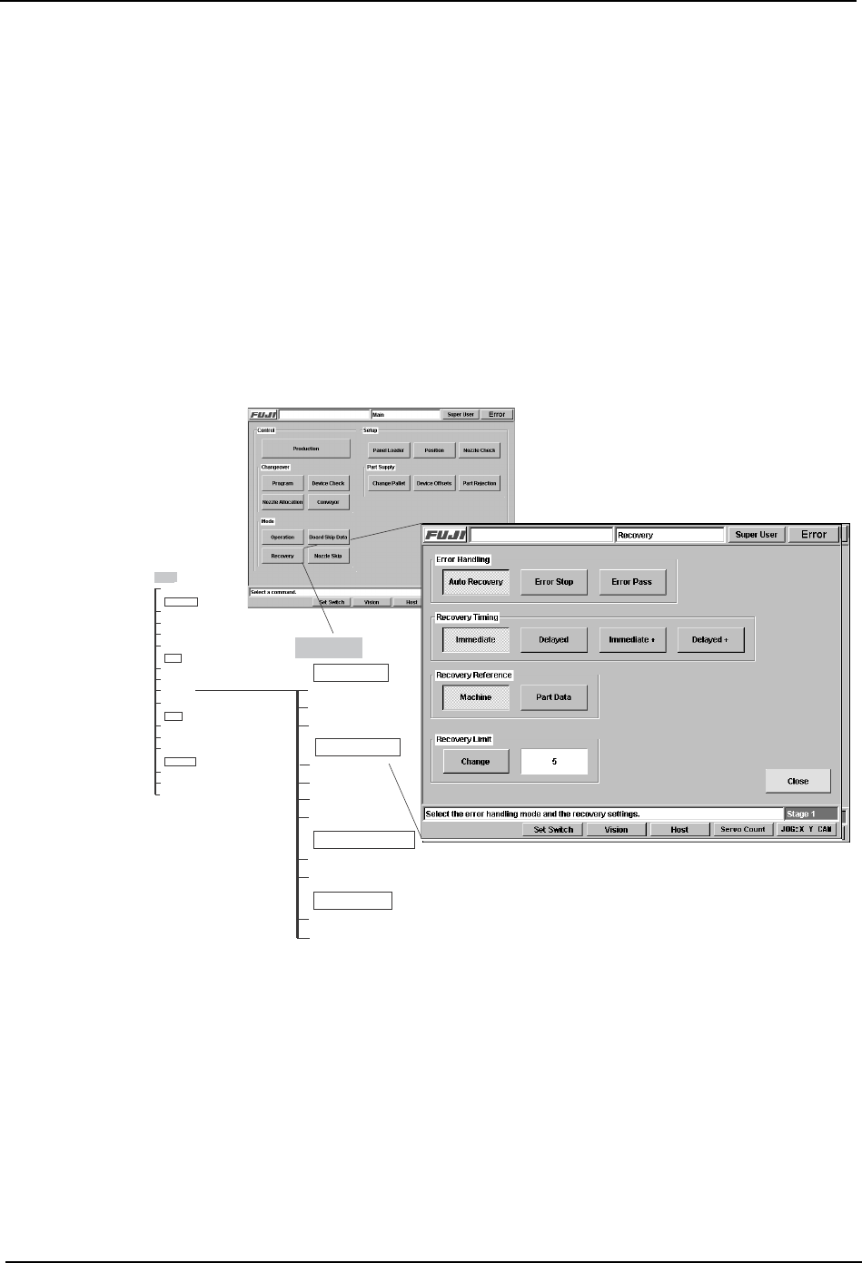 This chapter gives the command hierarchy of the commands on the machine.