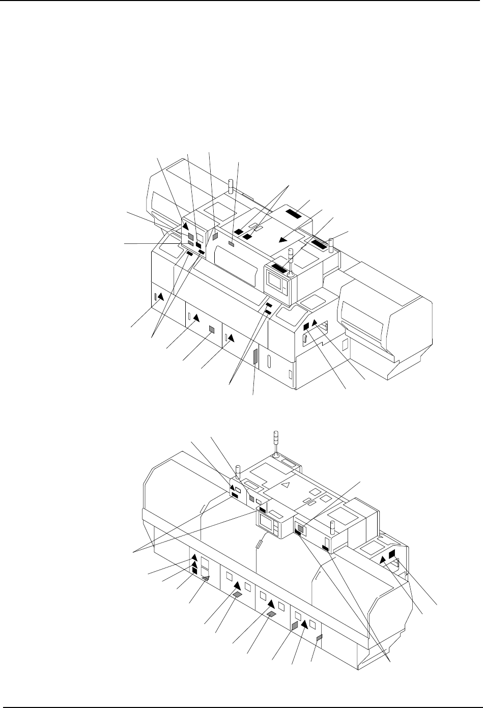 To warn the operator of hazards, safety labels are attached to the machine at the positions
