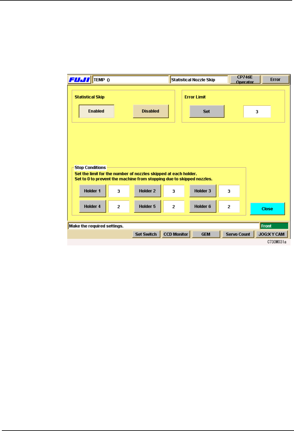 3.Machine System SYS-CP842-1.1E 48 CP-842E / CP-842ME System Reference Skipping Nozzles Automatica lly (Statistic al Processing ) The machine can be set to automatica lly skip nozzles which have a high rate of error . Us…