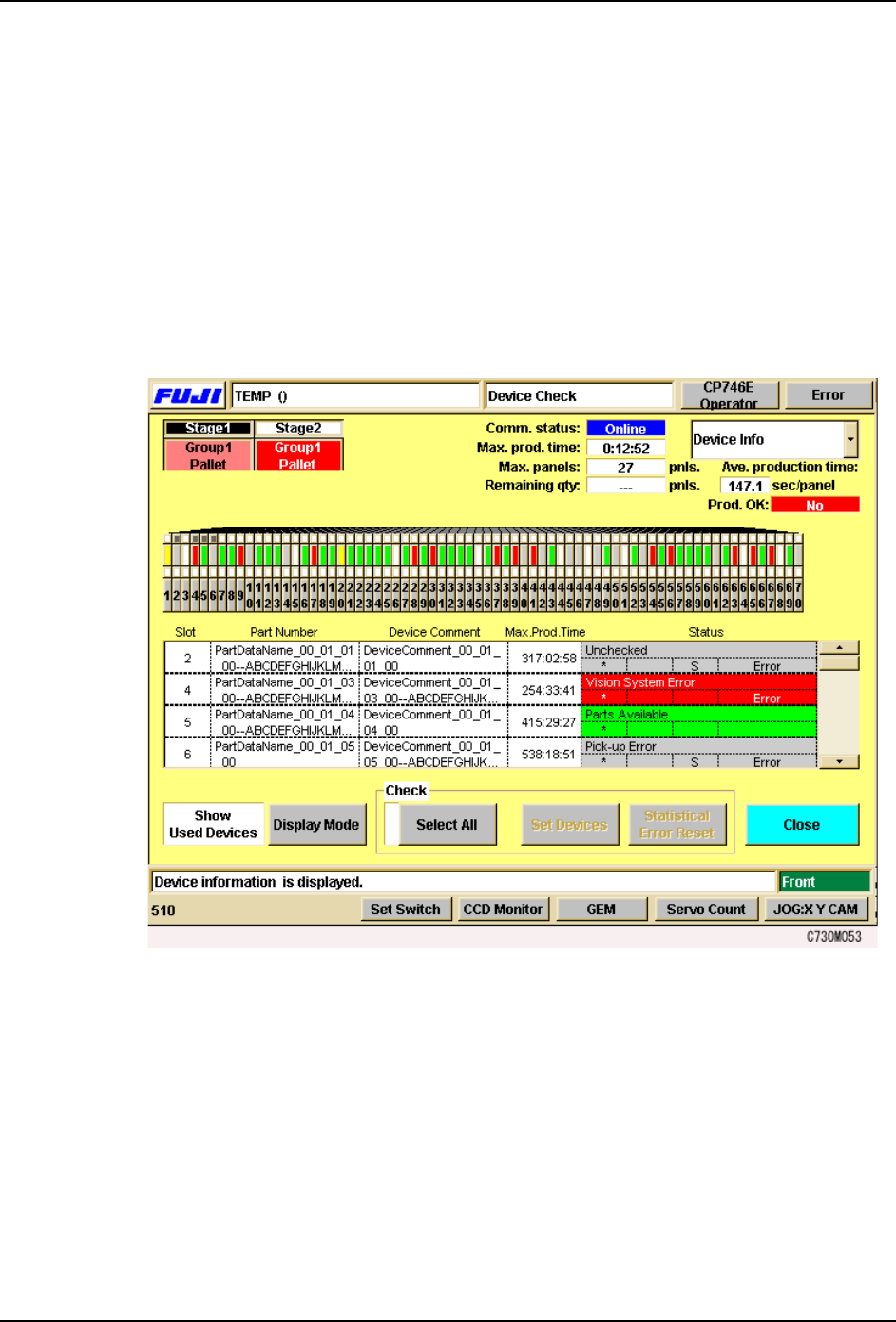 Pick-up Miss The [Device Check] screen displays automatically if a pick-up or parts