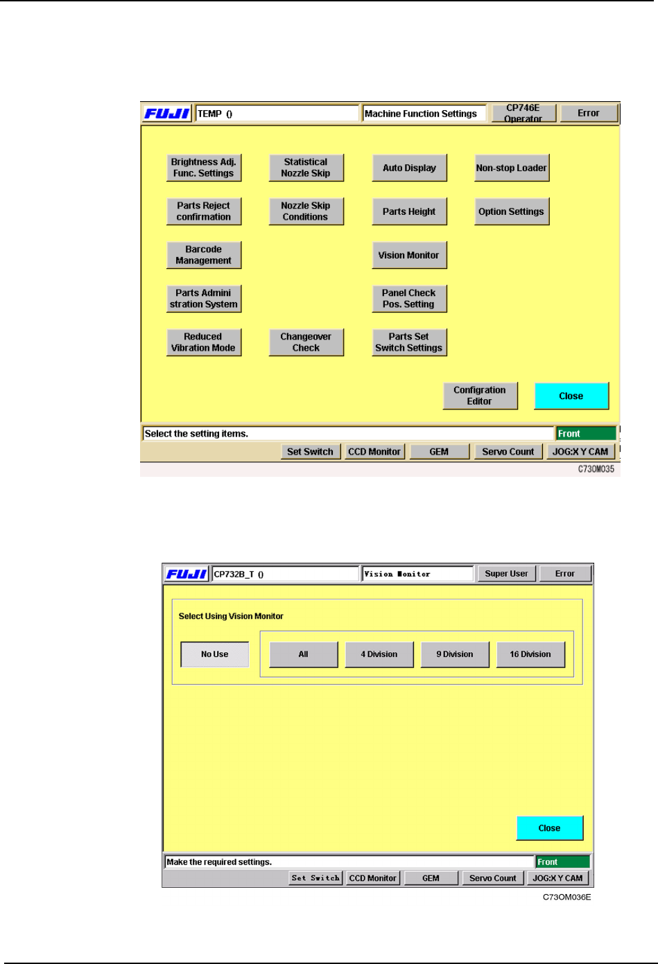 1. Select [Maintenance] [Configuration] [Vision Monitor] from the [Main] screen.