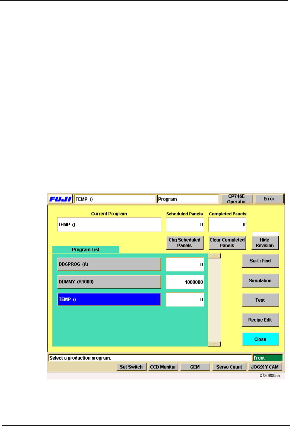1. At the [Production Mode] screen, select either [Simulation] or [Test Placement], then