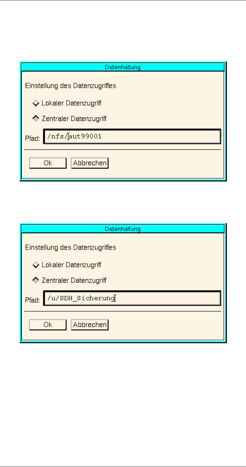 Abbildung 4.8: Umschalten auf zentrale Datenhaltung auf Fremdrechner