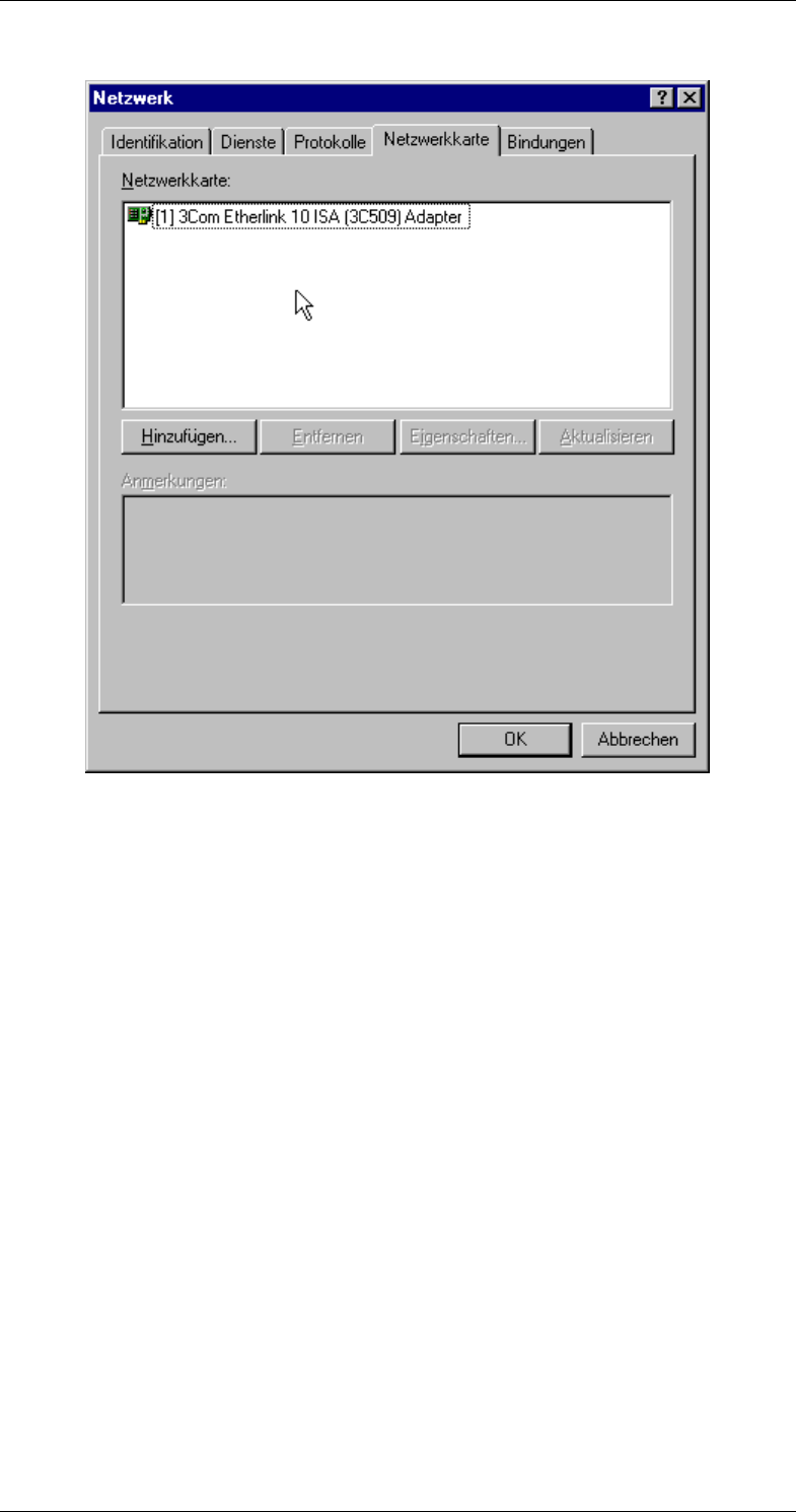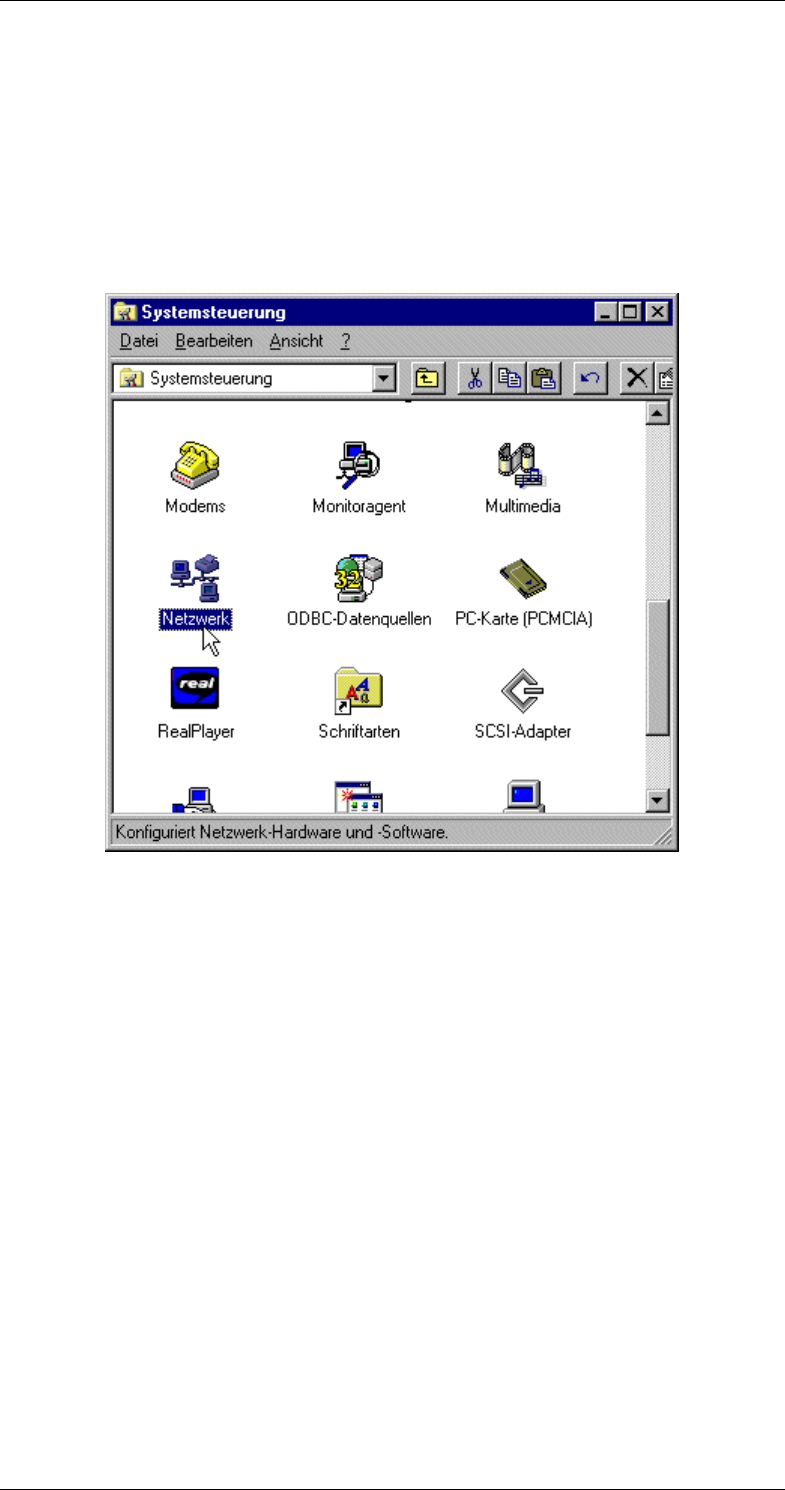 Die Konfiguration des Netzwerkes wird bei Windows NT 4.0 unter der Netz-