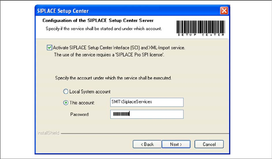 password. You may accept the SIPLACE Service default password or choose one of your own.