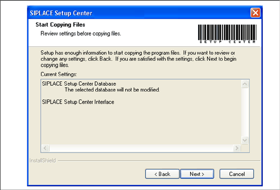 The following dialog appears, in case no database with the name SiplaceSetupCenter exists: