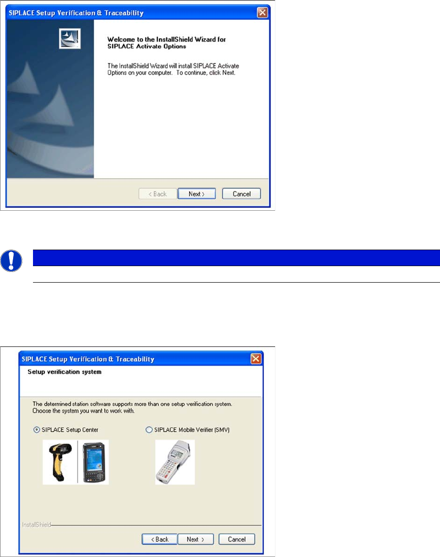 Setup Center Application Installation Setup Verification and Traceability Activation 5.3.1 Installing 46 Installation Manual SIPLACE Setup Center 8.0 5.3 5 . 3 S e t u p V e r if ic a t io n a n d T r a c e a b ilit y A …