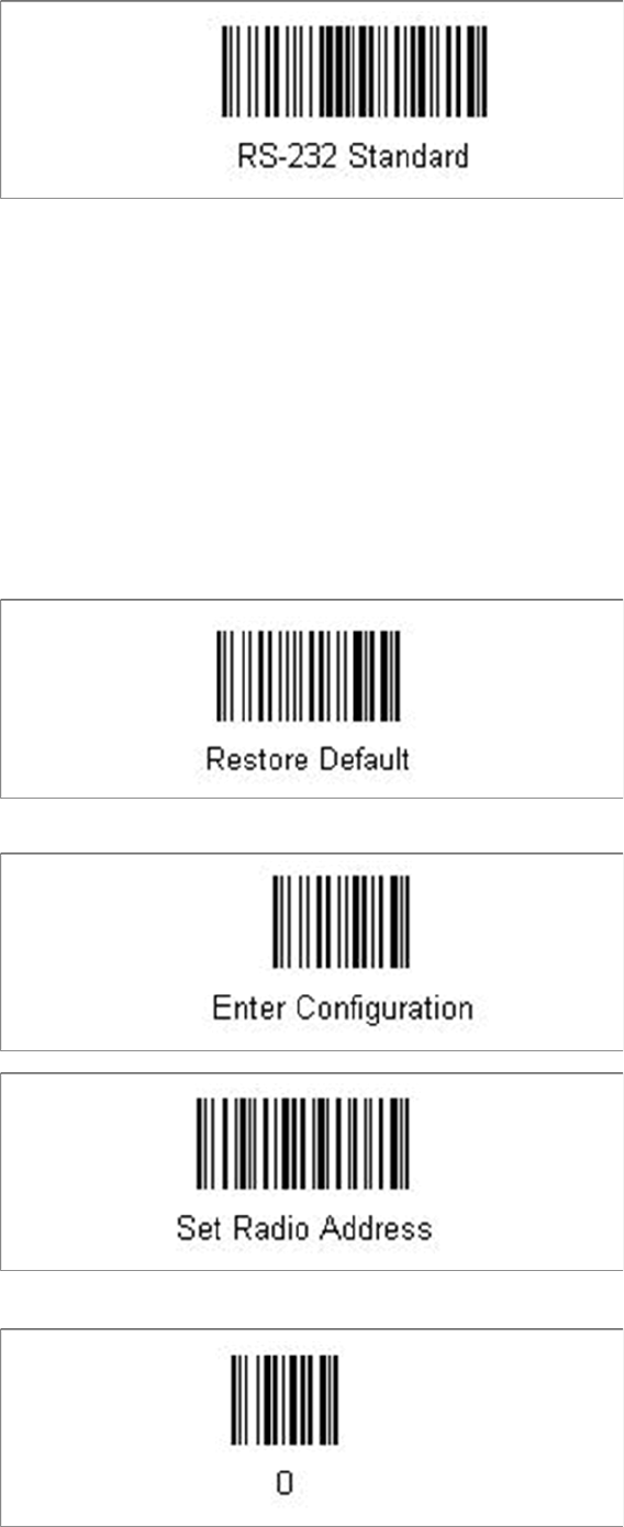 ► Scan the barcode "RS-232 Standard" to set the interface to RS-232.