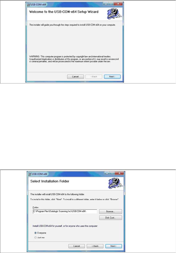 er\Datalogic\USB-COM Driver” directory of the Setup Center installation CD.