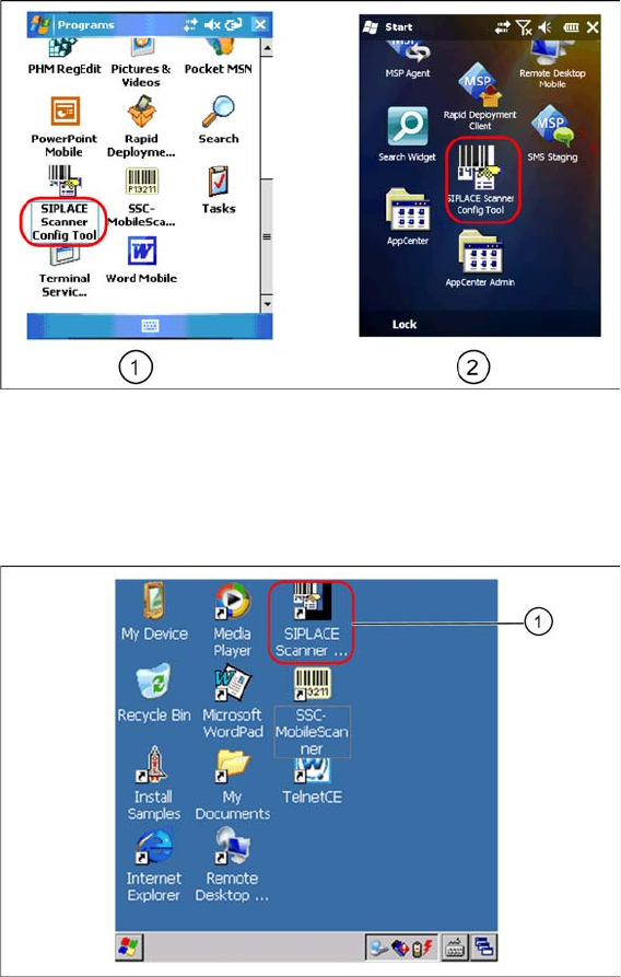 ► Select SIPLACE Scanner Config Tool to continue (select icon (1) for MC70 or icon (2) for MC67 /