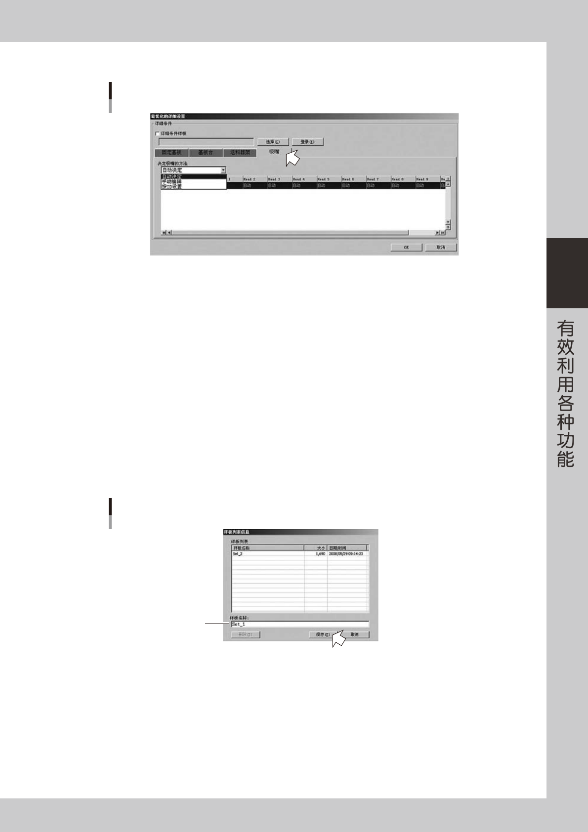 选择此项目,可手动设置各贴装头使用的吸嘴。