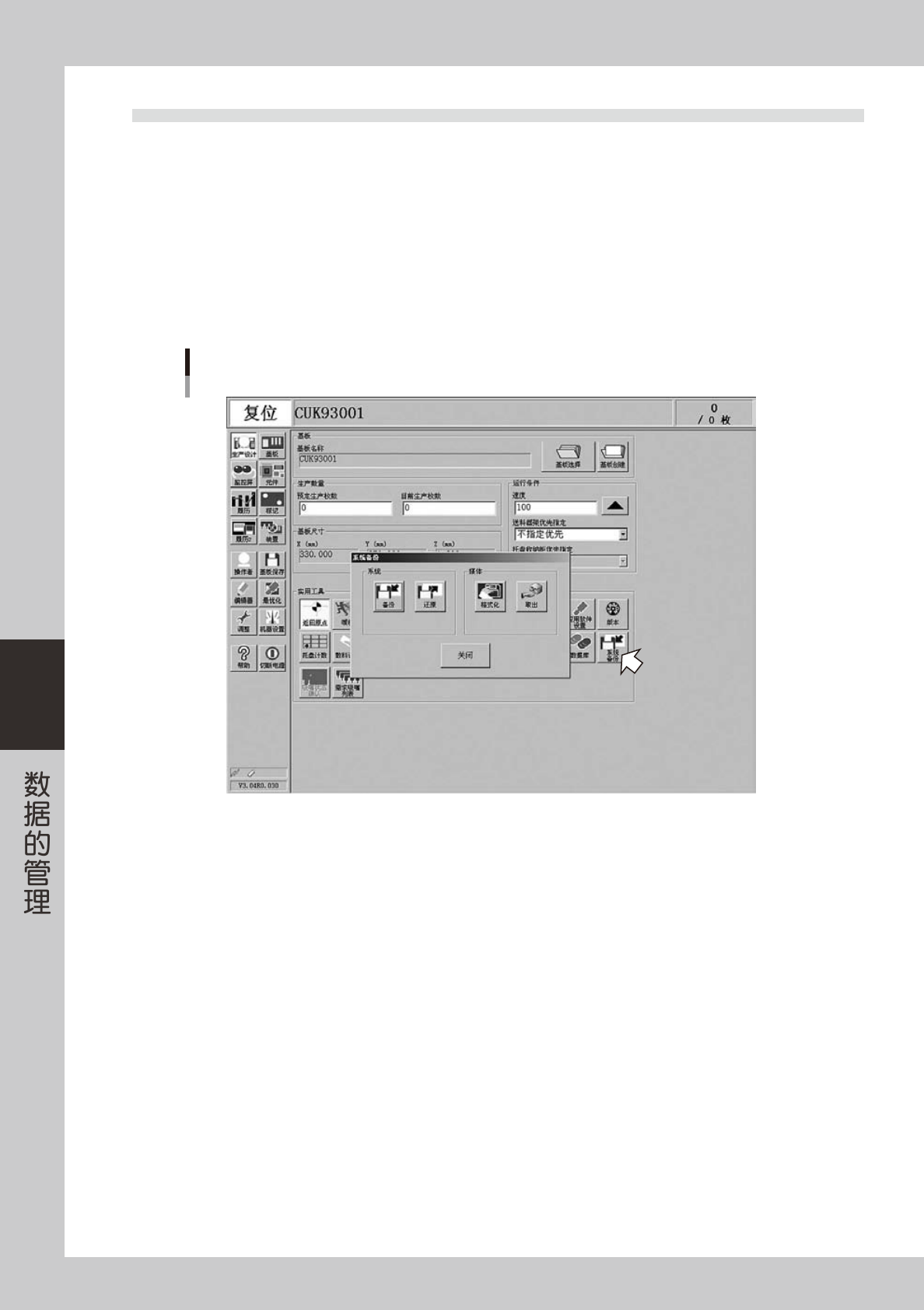 5. 返回「系统备份」画面后,按[关闭]按钮,关闭画面。