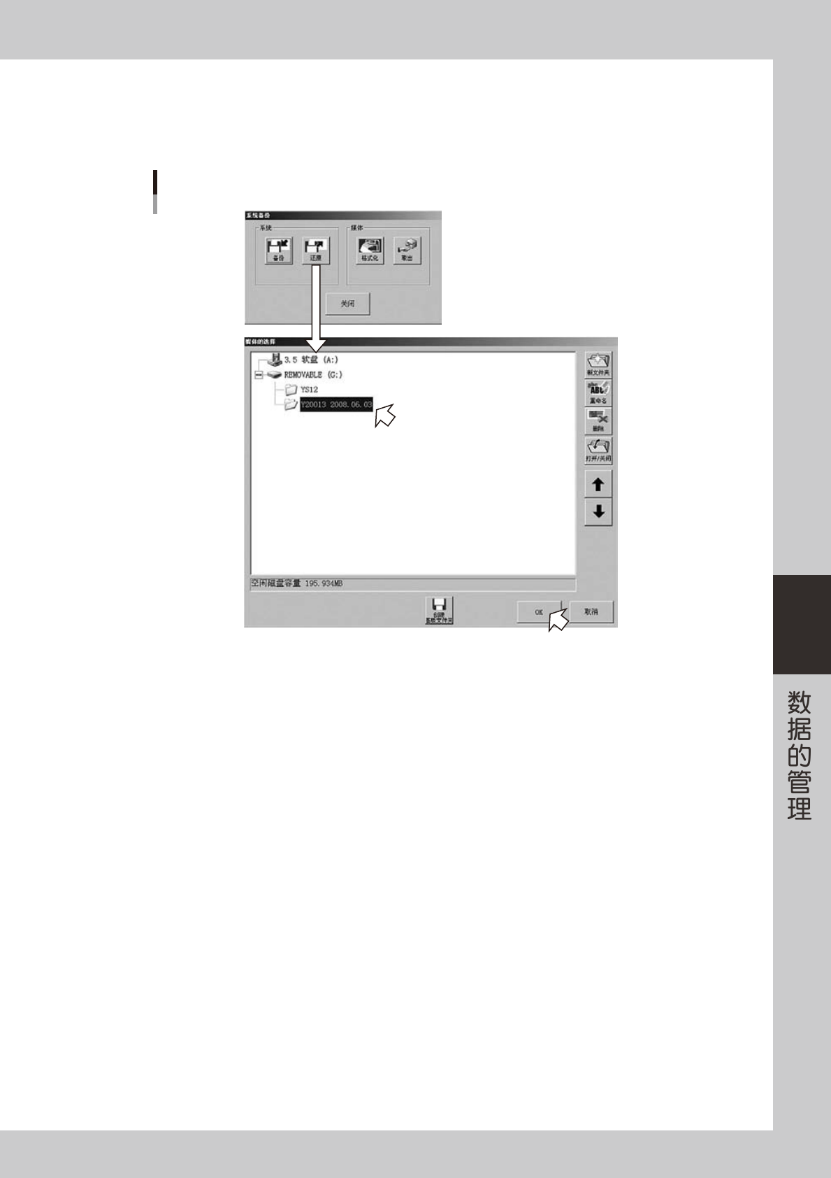 2. 显示「媒体的选择」画面后,选择要还原的系统备份数据,按[OK]按钮。