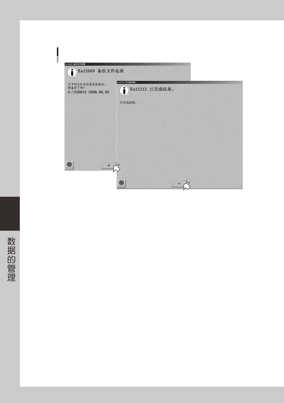 4. 完成系统数据还原后,显示还原完成对话框。