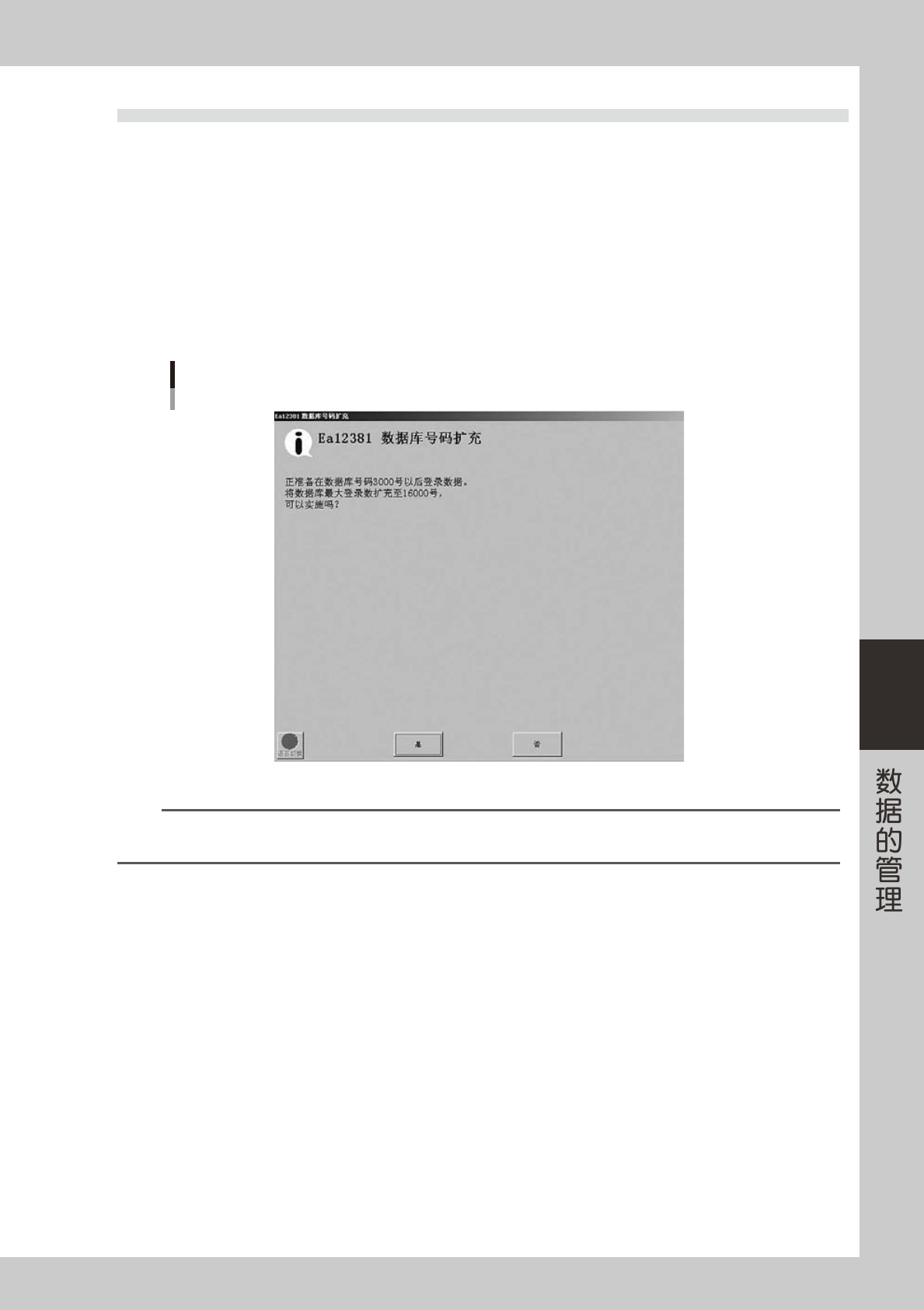 2.如果在没有扩充的状态下,在数据库号码 3001 号以后执行元件数据的新登录,会出现如下图所示的确认提示。如选择 [ 是 ],