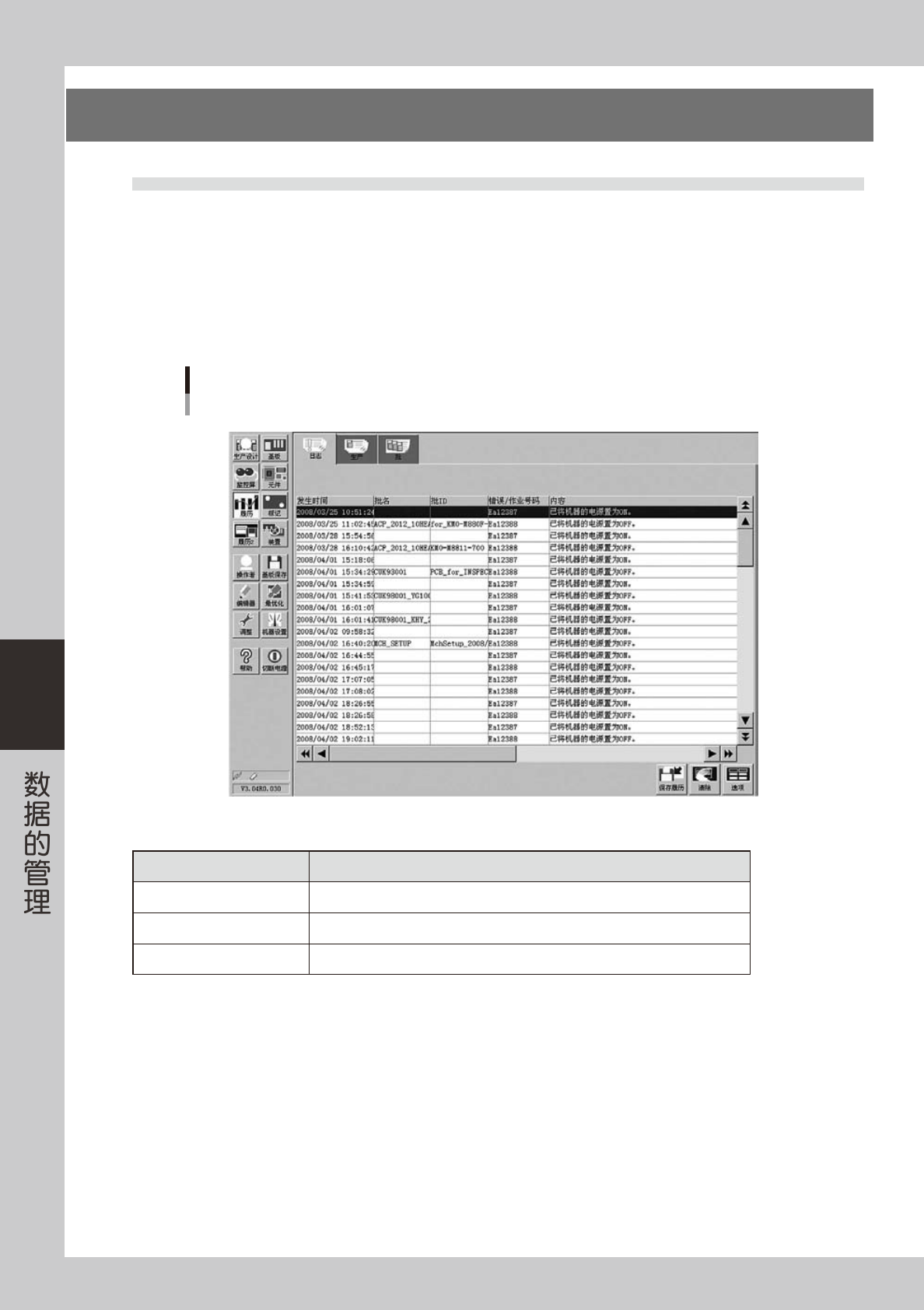 前者,主要是有关错误、作业等的日志和与基板相关的日志,可以在「履历」画面浏览。