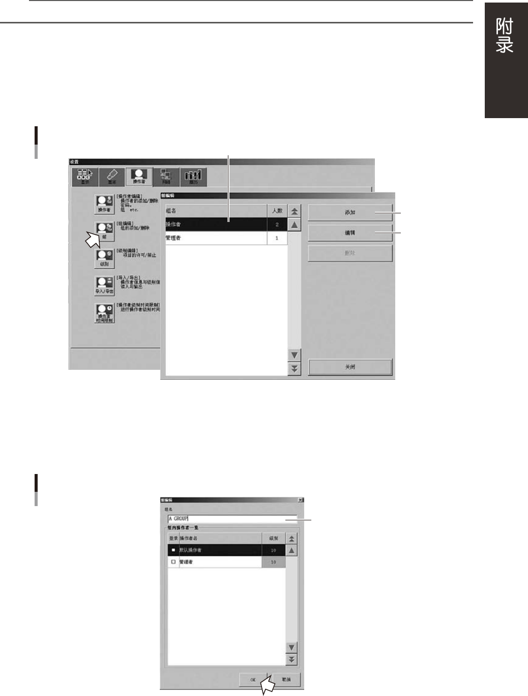 以下说明组名的更改与添加、操作者的添加登录与删除等方法。