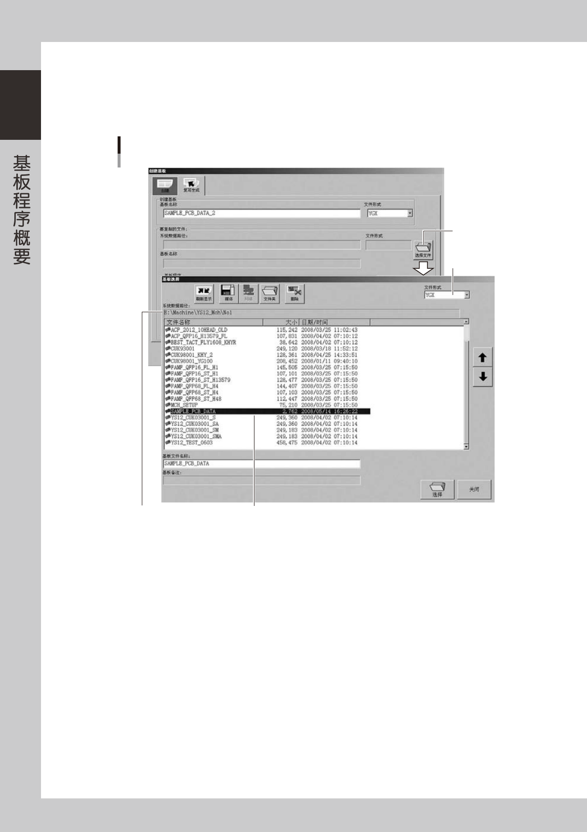 1. 按要复制文件栏的[选择文件]按钮。显示「基板选择」画面,确认路径、文件形式。