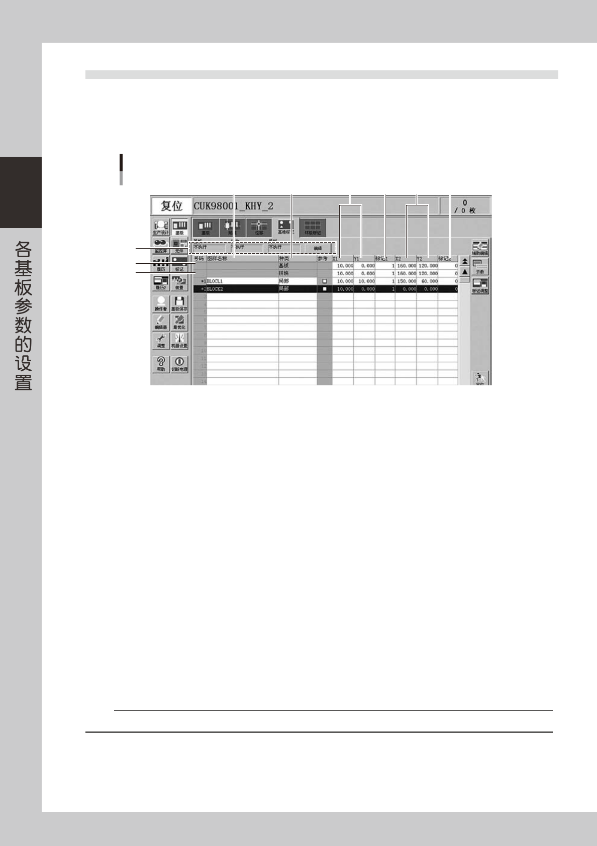 最上行为「基板原点」、第 2 行以后为「拼块位移」。( 不可更改 )