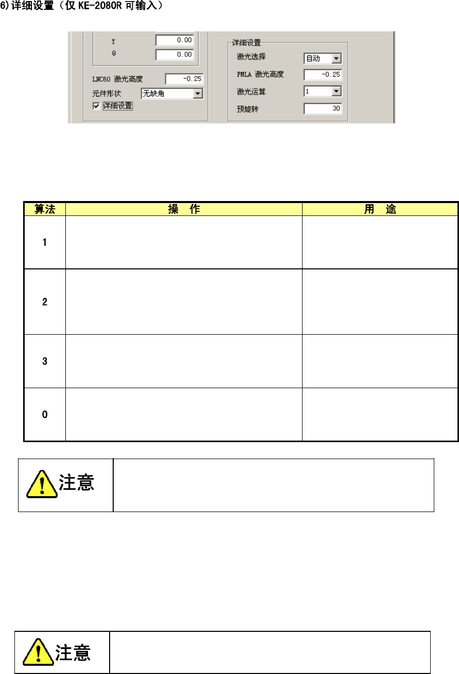 激光运算:可指定用于激光识别的算法。主要用途如下所示。