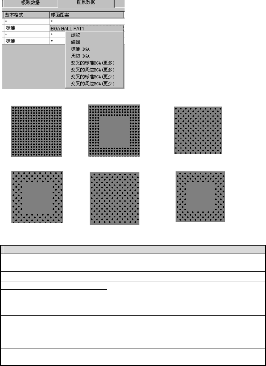 操作手册Ⅱ 2-81 10)球面图案(仅限于 BGA、FBGA) 设置BGA、FBGA元件识别图案。 仅在“识别方式”为“全球面”或“全垫片”时才能设置球面图案。 请右击或按“F2”键,从显示的列表中选择。 …