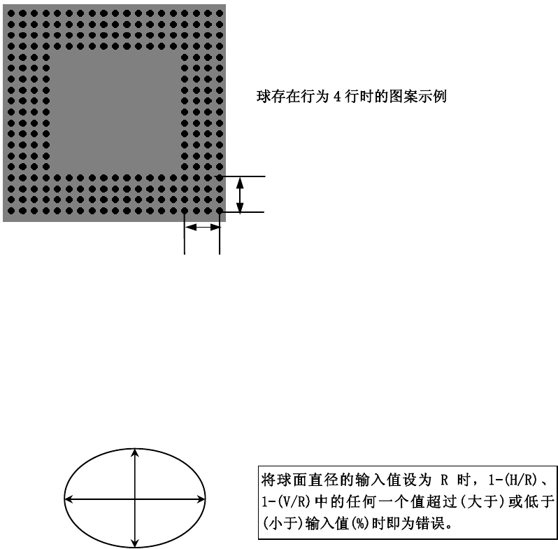 ●变形检查:检查球的面积。与输入的球直径换算的球面积比较,算出来的像素值低于设