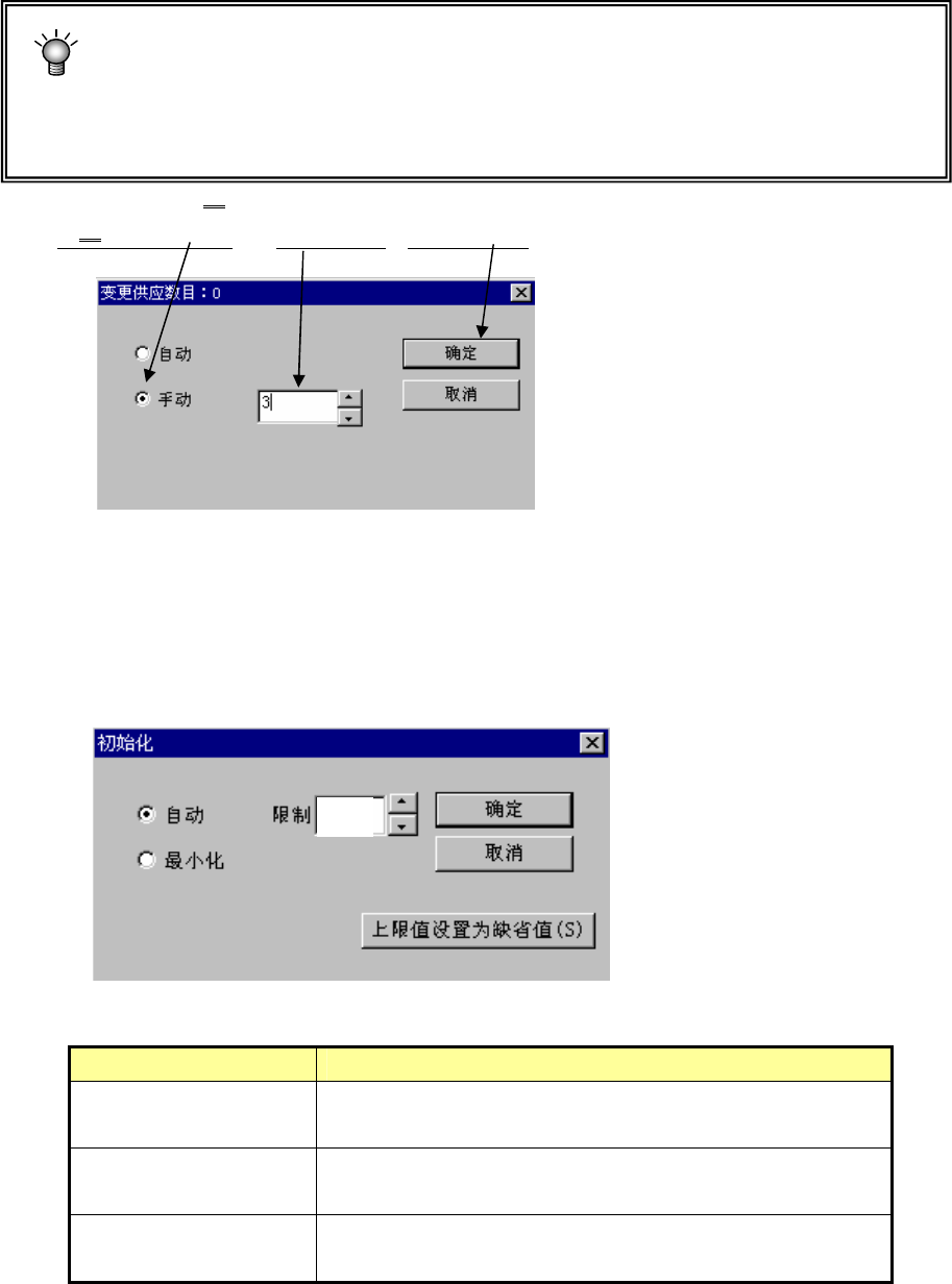 请在单击“手动”后,输入供给数,单击“确定”。