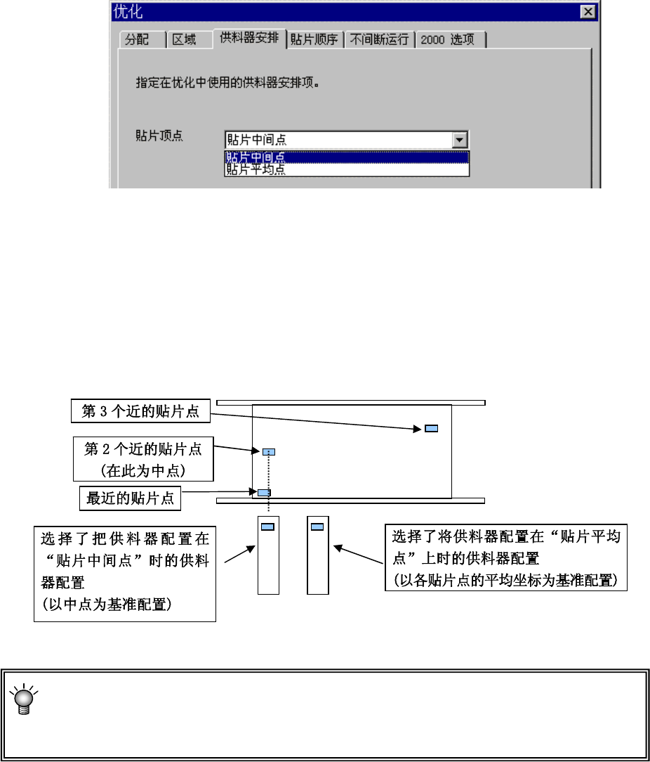 将供料器配置在离各所有贴片点的平均坐标最近的位置上。