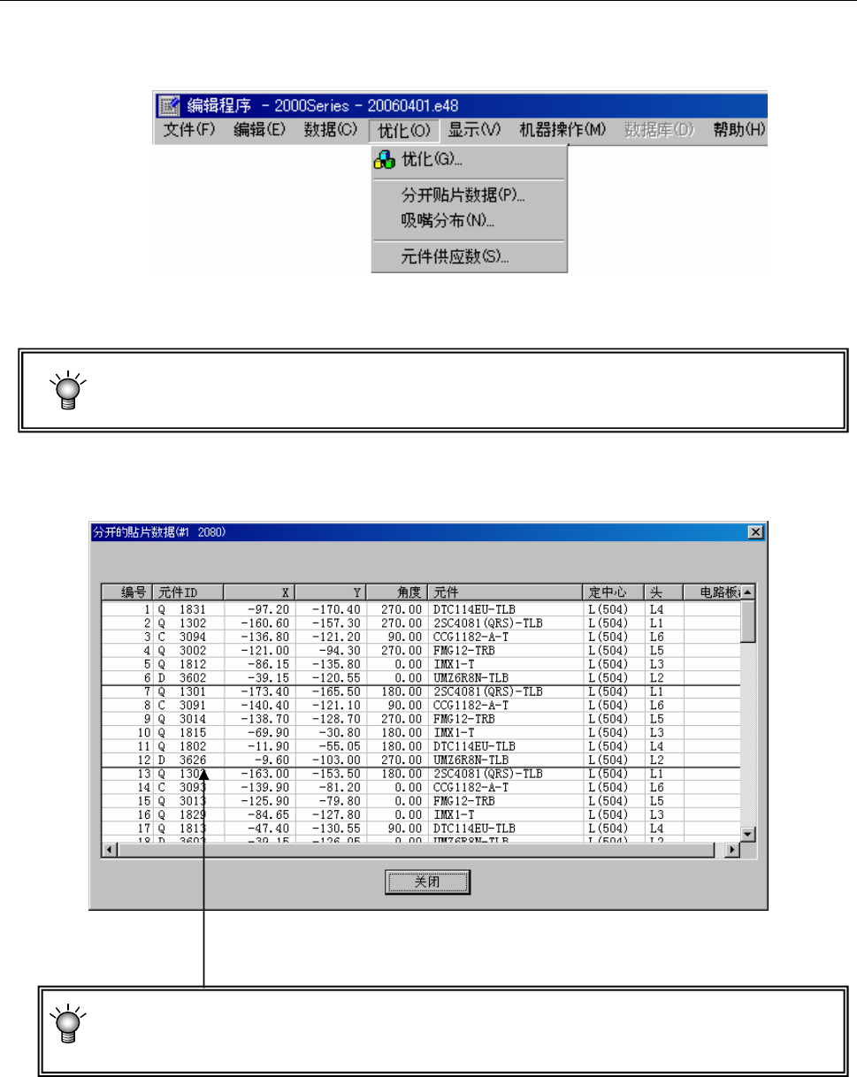请从菜单中选择“优化”/“吸嘴分布”。