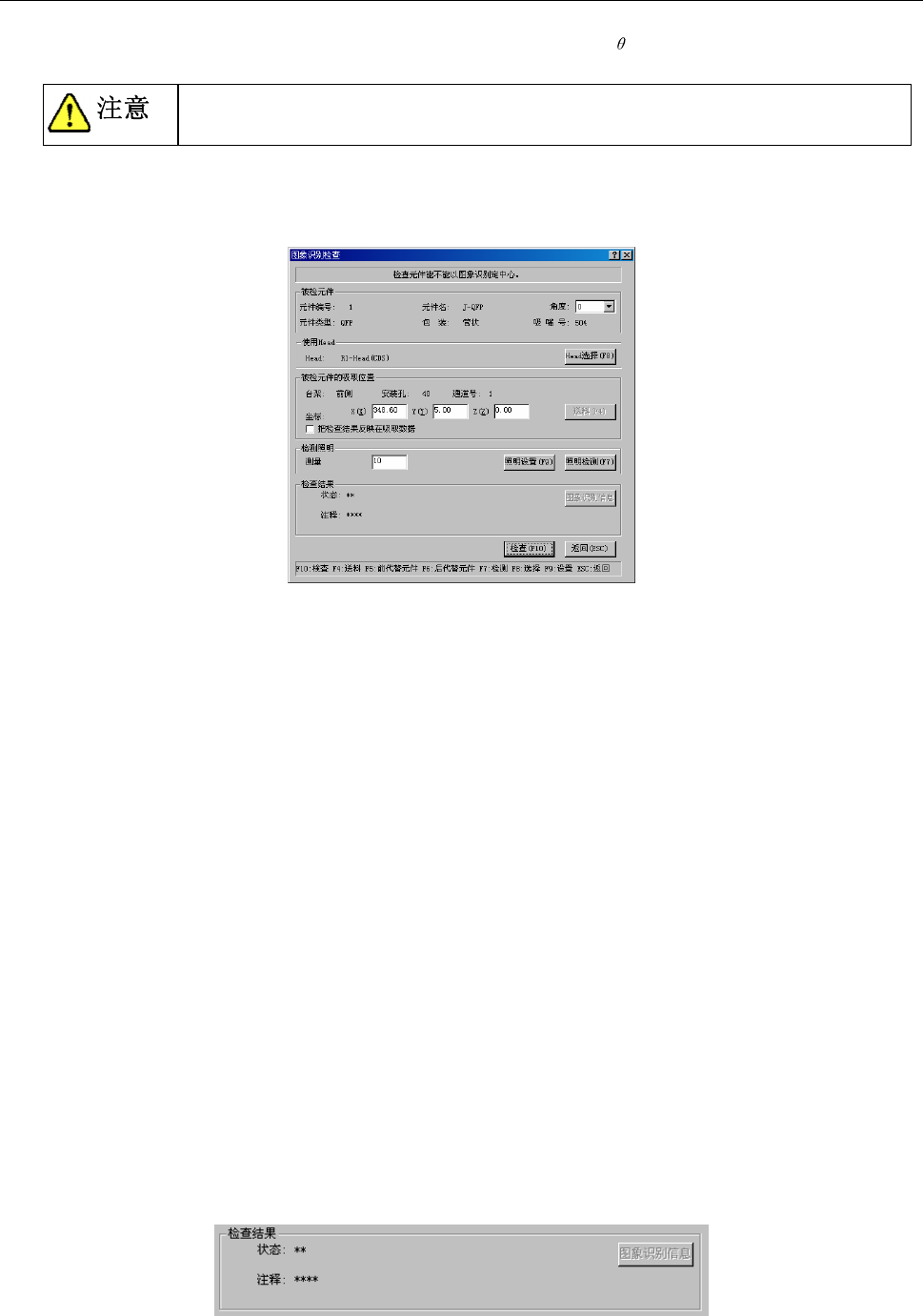 操作手册Ⅱ 2-161 2-5-4-3检查 将实际使用的元件安上贴片头,通过图像识别,检查能否进行元件定中心。 使用速度检查功能,进行模拟生产,检查在各种运行中的 XY 偏差值。 为了避免人身伤害,在机器运行过程中,切勿将手和头伸入装置内部。 …