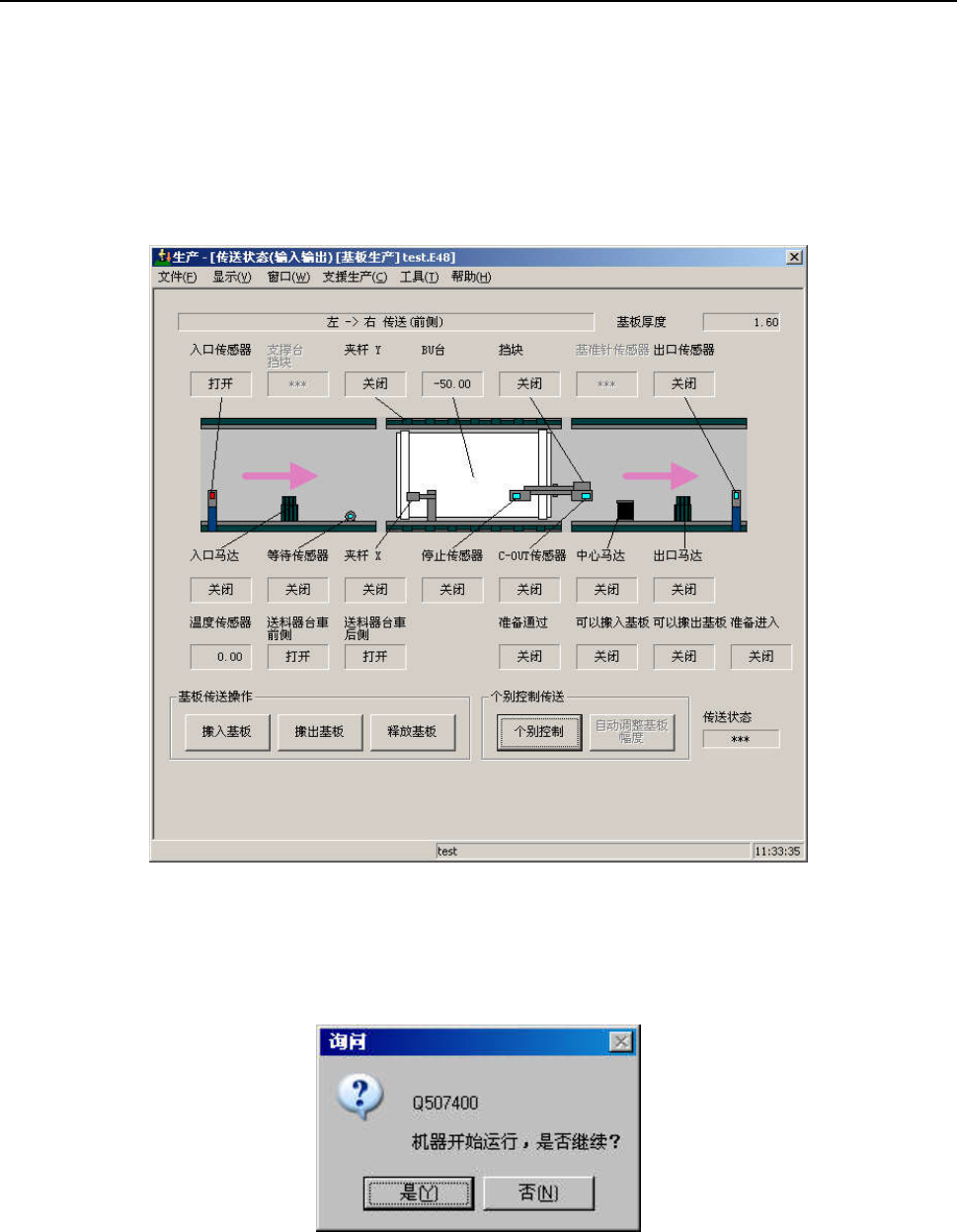 此外,在下图的生产通过中画面,可以执行基板搬入/搬出等传送运行。