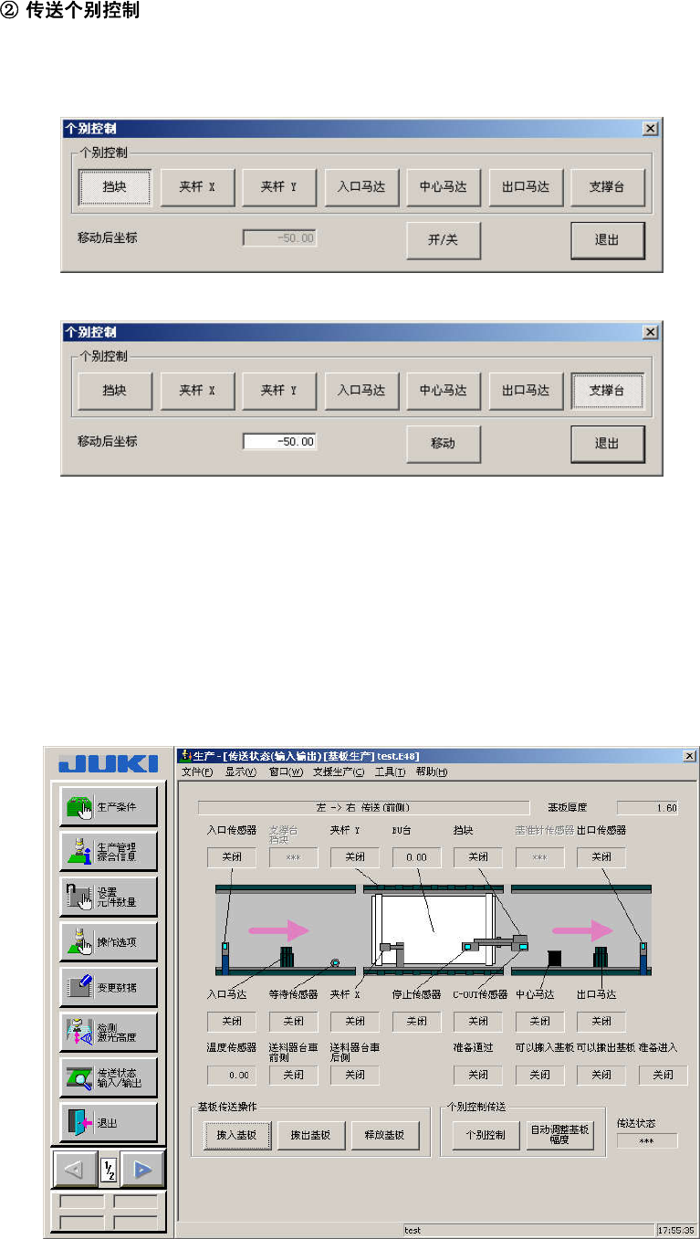 在生产进行中,不显示传送方向、基板厚度、传送运行命令和传送状态。