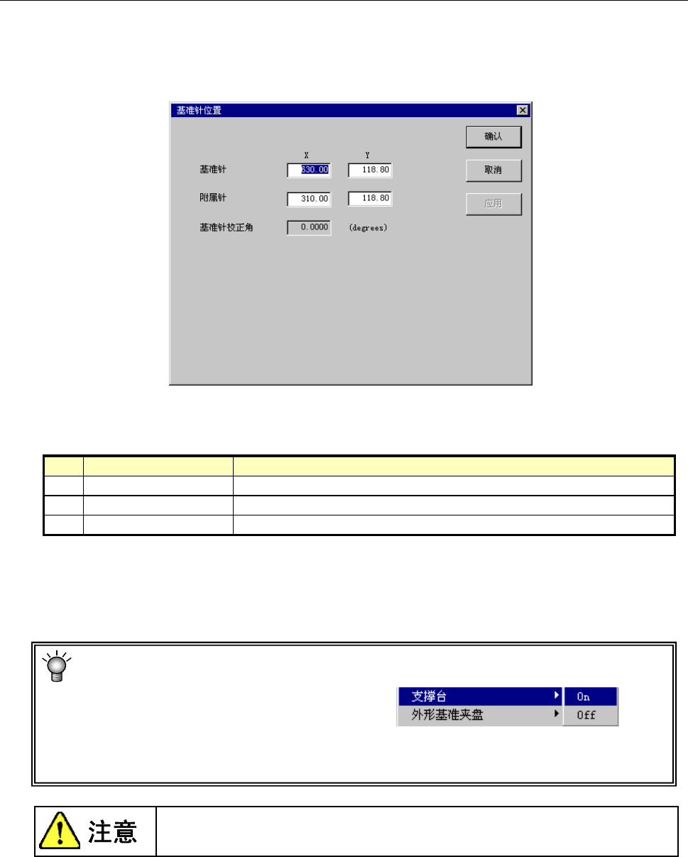 基准针(X、Y) 从机器原点到基准针的中心位置