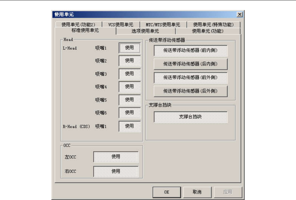 点击标签,指定“标准使用单元”、“选项使用单元”、“使用单元(功能)”、“VCS使用单元”、