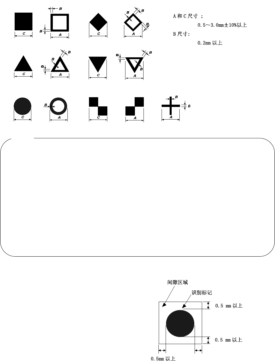 2. 一张基板内的基准领域标记,建议使用同一形状和同一大小的标记。