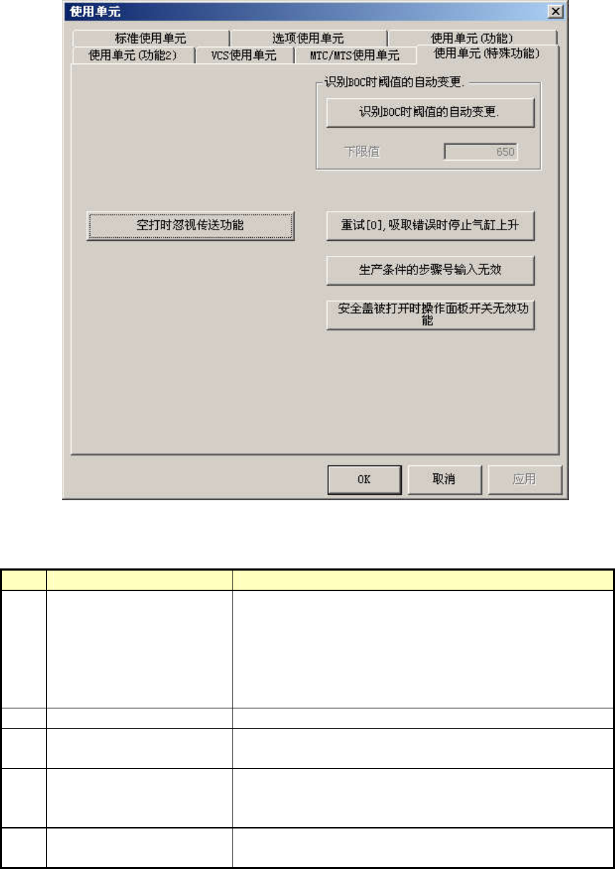 操作手册Ⅱ 4-76 7)特殊功能 根据使用环境,可以使用有效果的特殊功能。 应用中不适用时,可以设置为无效。默认设置中,特殊功能选项是被设置为无效。 ● 设置项目 No. 項目 機能内容 1 识 别 BOC 时阈值的自动变 更 BOC标记氧化后识别容易发生错误,因此不能识别时,识 别阈值自动下降到机器设置的下限值, 自动修改后, 再进 行识别。 可在下限值编辑框中输入阈值。输入范围是 65 …