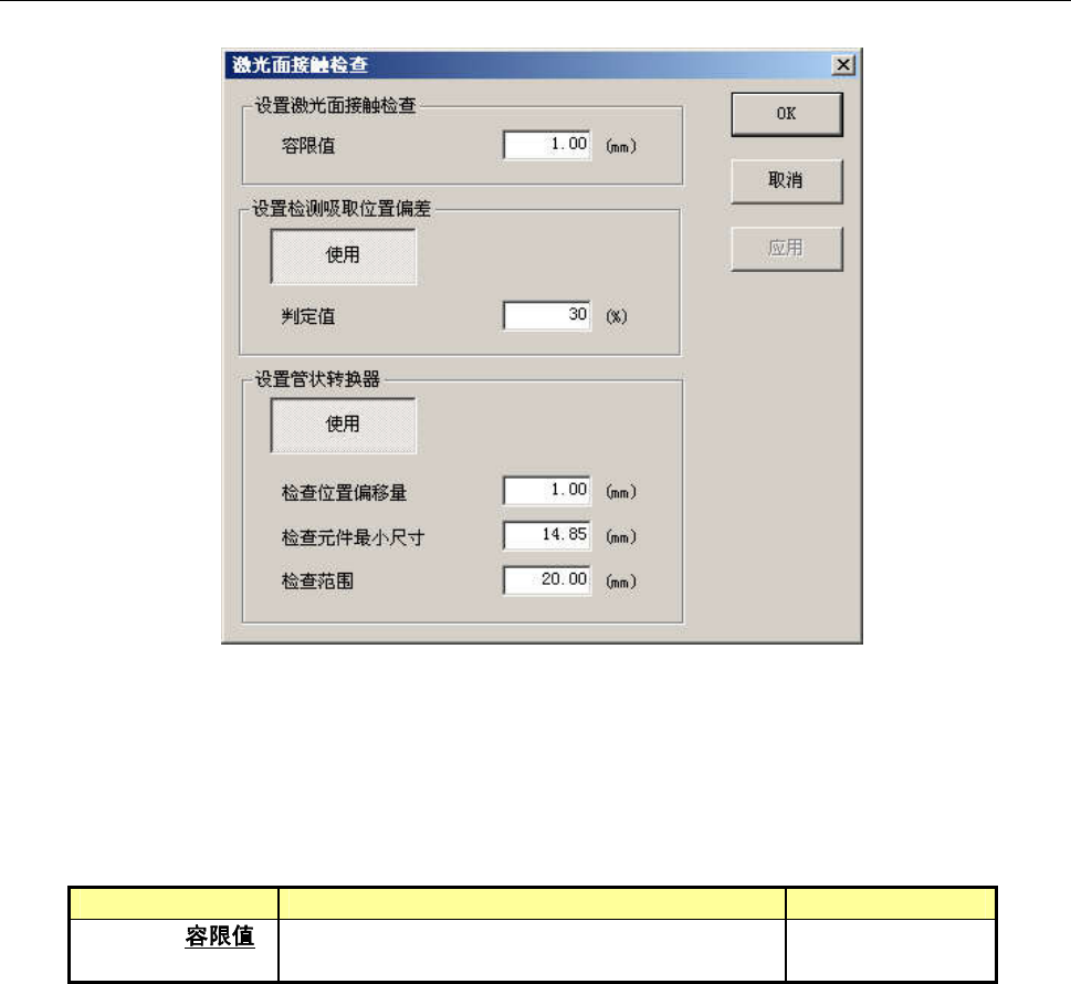 容限值]设置的值,在激光面接触检查的判定时,因为考虑中心偏差,