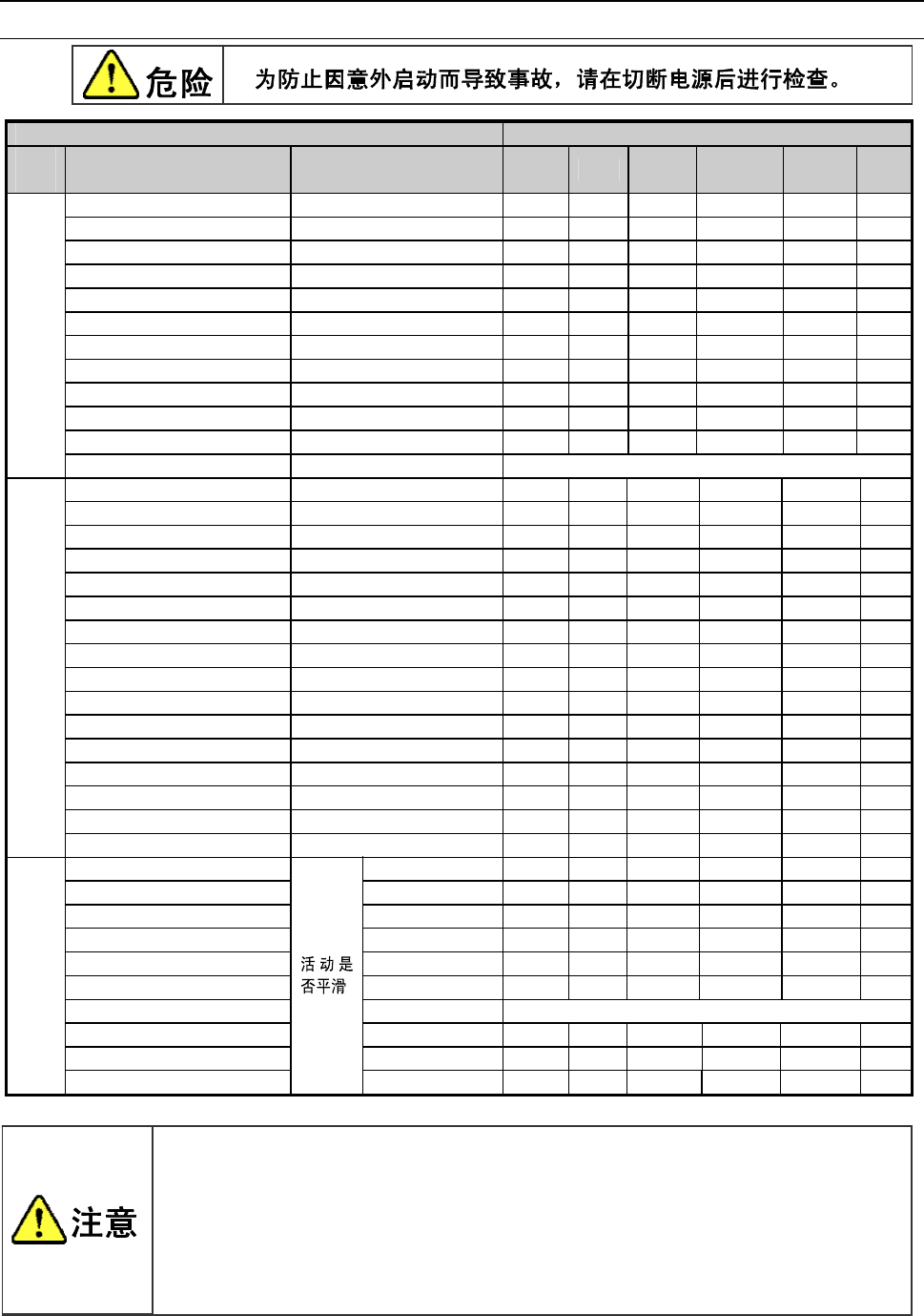检查调整项目 处理确认方法 每天 每周 每月 每 2 个月 每半年 每年