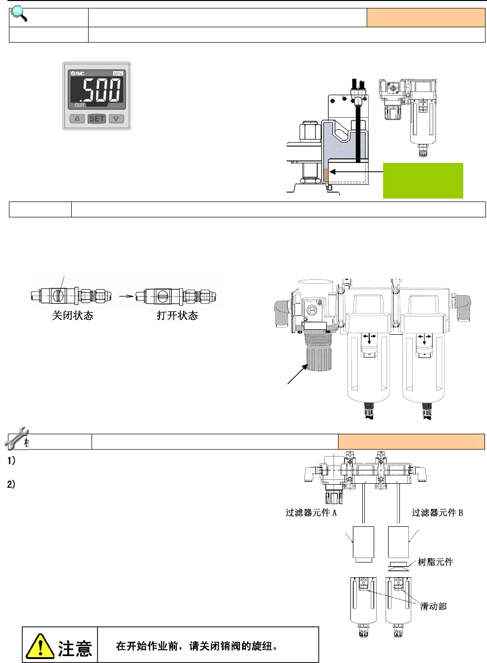 2) 如有堵塞现象,请更换过滤器元件。