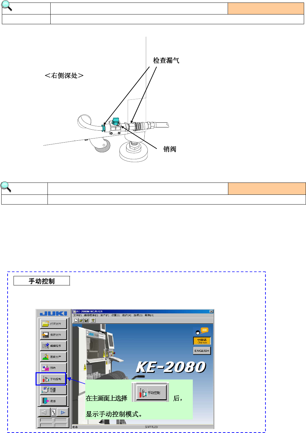 1) 主机接通电源后,请选择「手动控制」项目,检查下列各项目的动作状况。