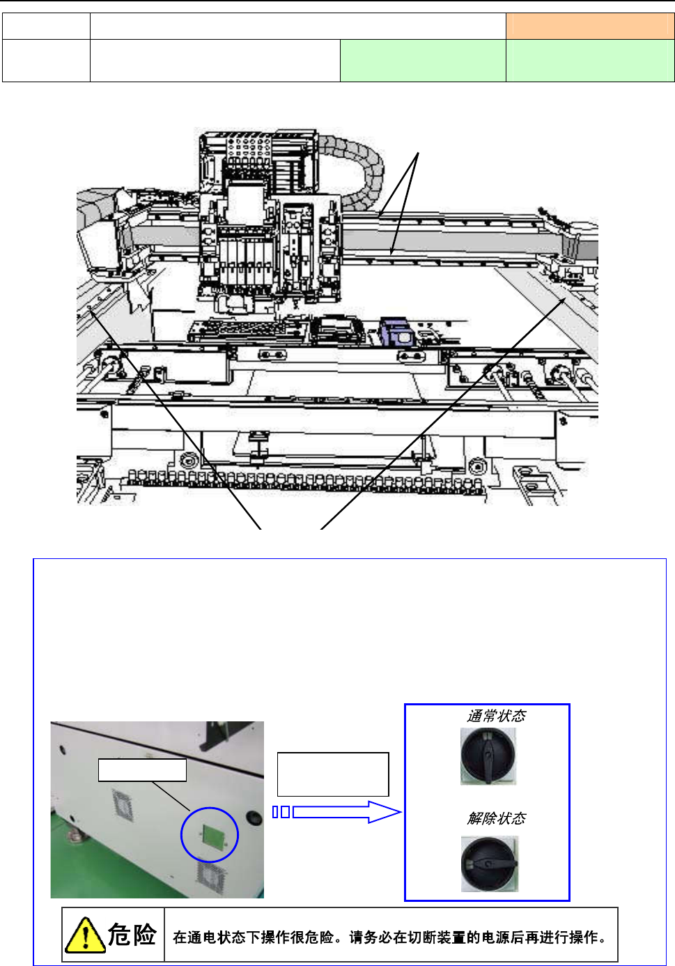 解除该开关后,很容易用手动方式把贴片头(X 轴)在 Y 方向上移动。