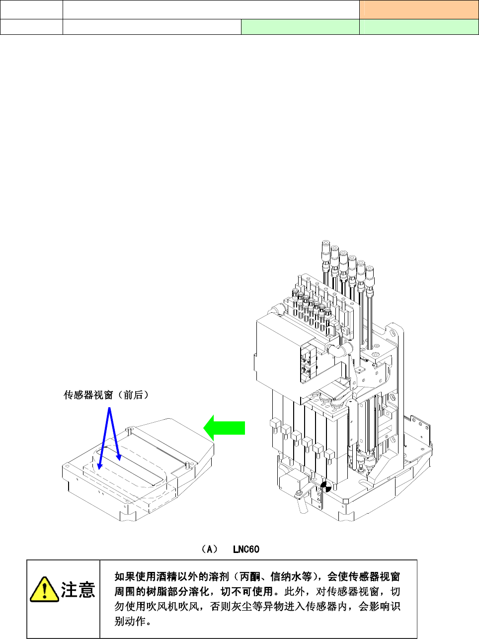 2) 传感器视窗的清扫,推荐每周进行一次。若容易脏污时,需要缩短清扫周期。