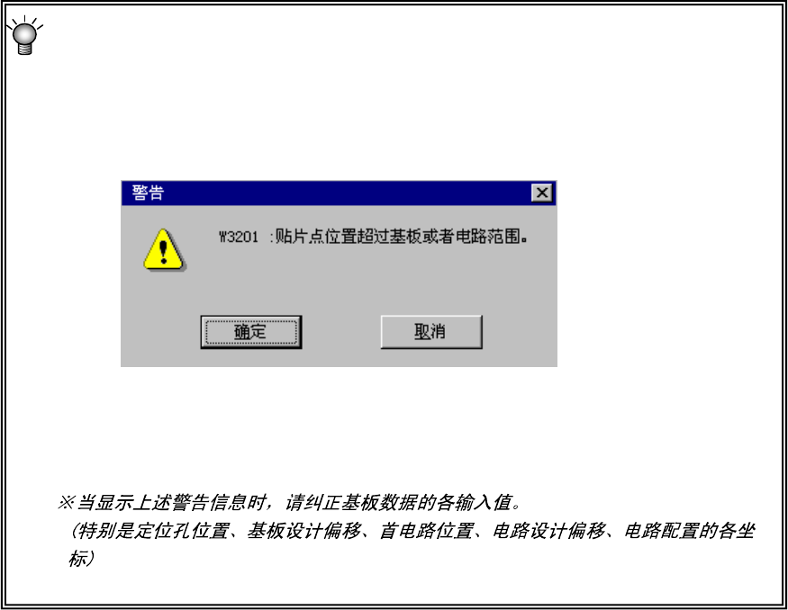 进行数据切换(选择贴片数据等)时,对输入的 BOC 标记与坏板标记坐标是否在基板